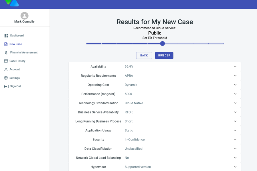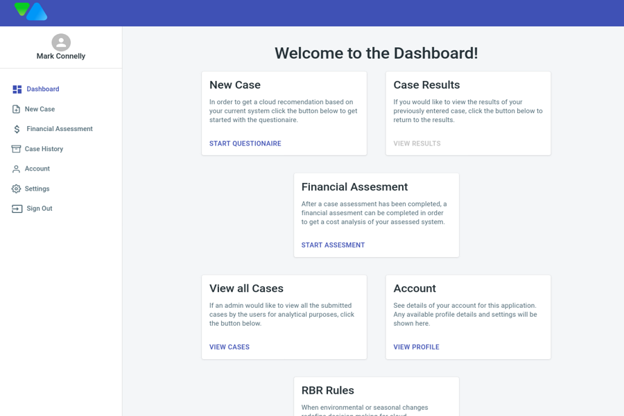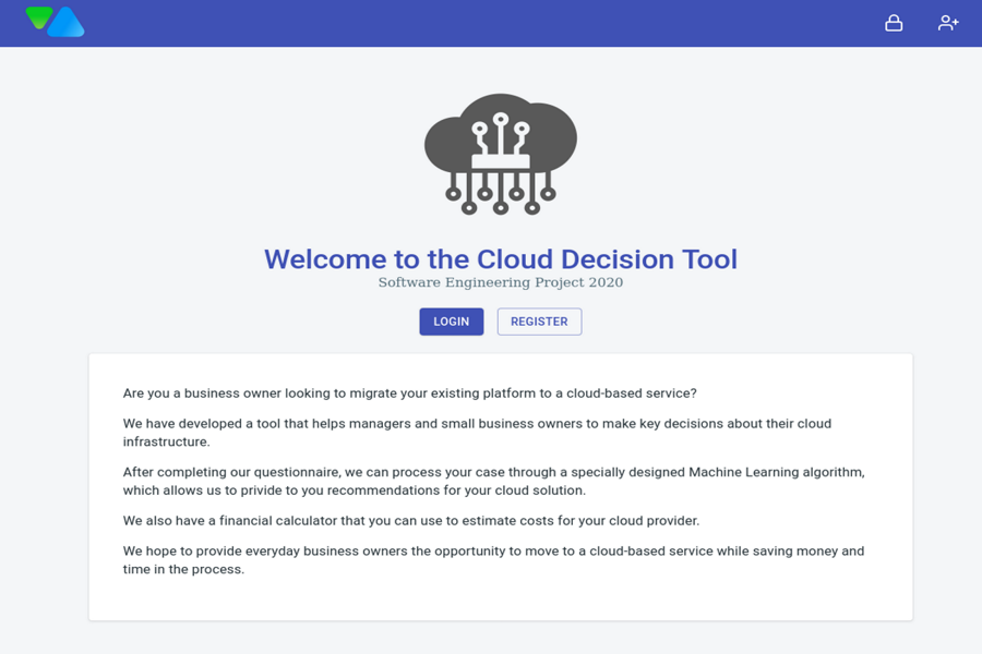 The project scope included a React web application, a Python CLI tool, and an Express microservice — all working together to implement and demonstrate a case-based reasoning (CBR) algorithm designed by the PhD student. The purpose for this tool was to assist companies determine the ideal cloud platform for their business needs by analyzing and comparing potential solutions.