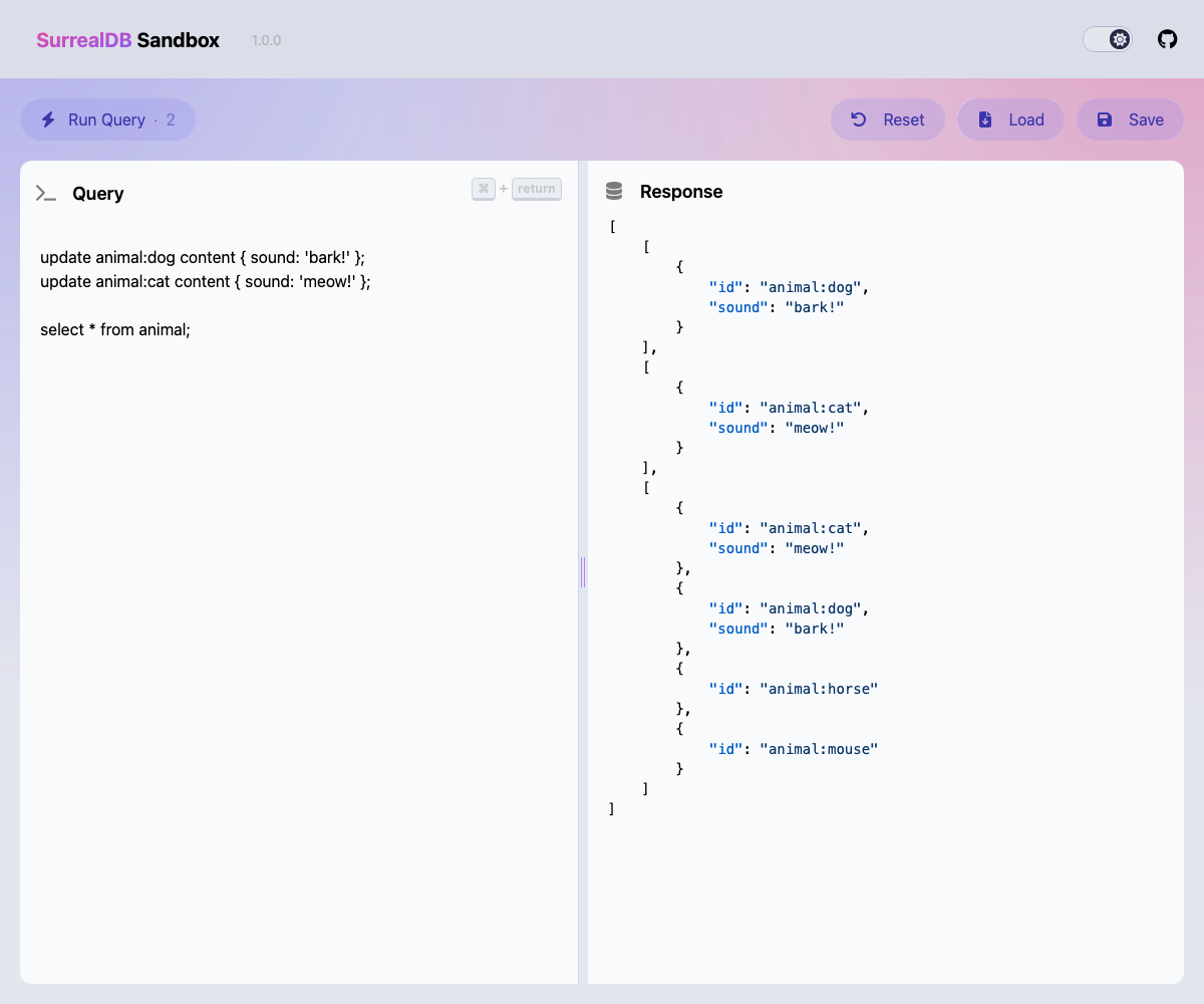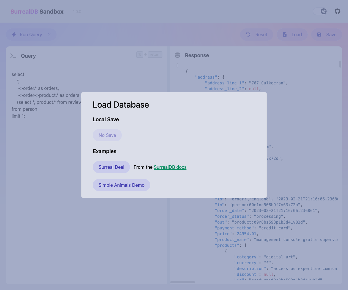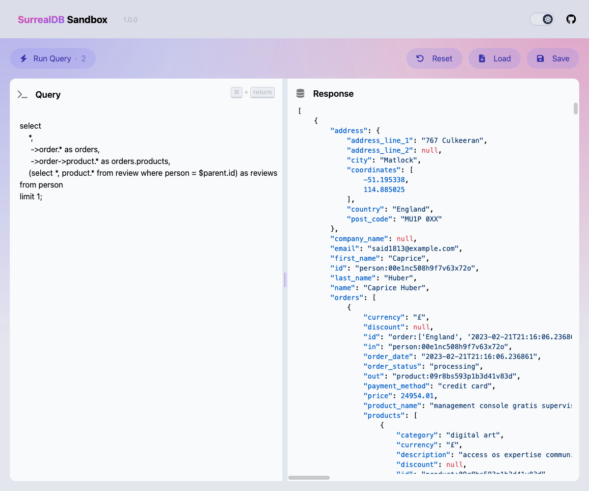Explore SurrealDB/SurrealQL directly in your browser with this interactive playground.